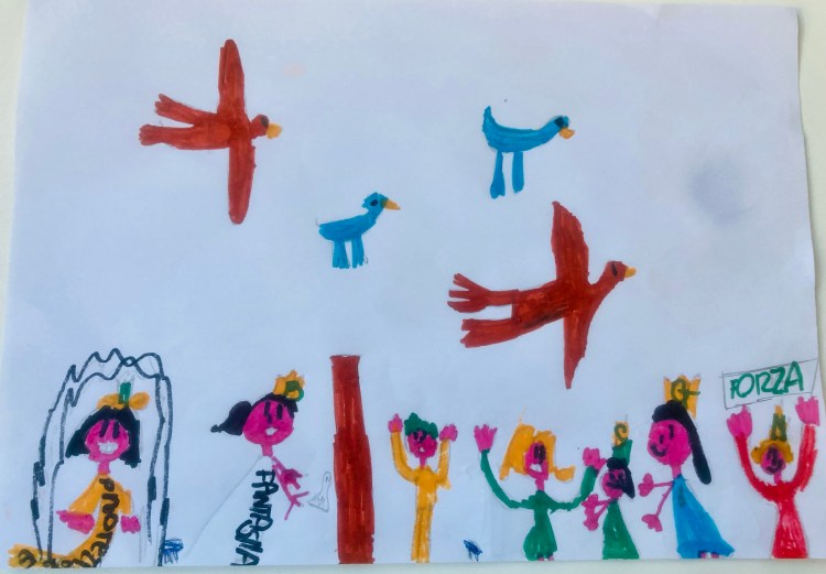 [LE SUPERBIMBE E IL PAESE DELLE STREGHE – Giulia, Camilla e papà Gianni, disegno di Giulia e Camilla, 2020-2023]