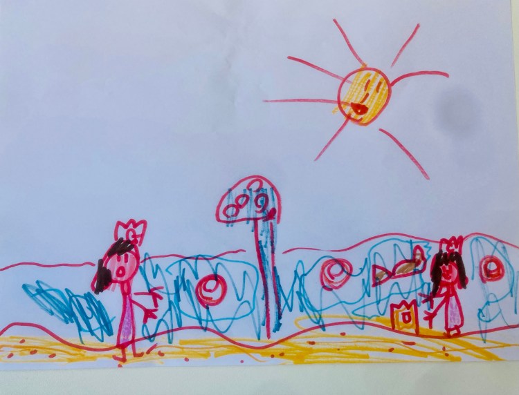 [LE SUPERBIMBE E IL PAESE DELLE STREGE – Giulia, Camilla e papà Gianni, disegno di Camilla, 2020-2023]